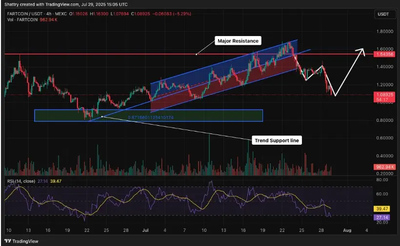 Per his analysis, “the $1.1 support level must remain intact to facilitate a rebound toward $1.50, while a decisive breakout above $1.62 could propel FARTCOIN toward the coveted $2 target.”