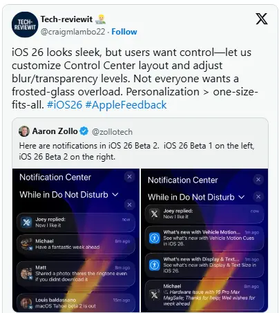 Even though the beta build has not yet been finalized, users have shared photographs and criticized the areas in which Liquid Glass failed to meet expectations regarding readability and usability.