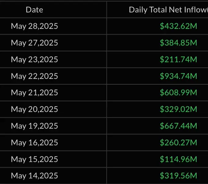 Bitcoin ETFs gain $100-900M daily for 10 days, totaling over $4.3B, with IBIT stabilizing and drawing institutional investors.