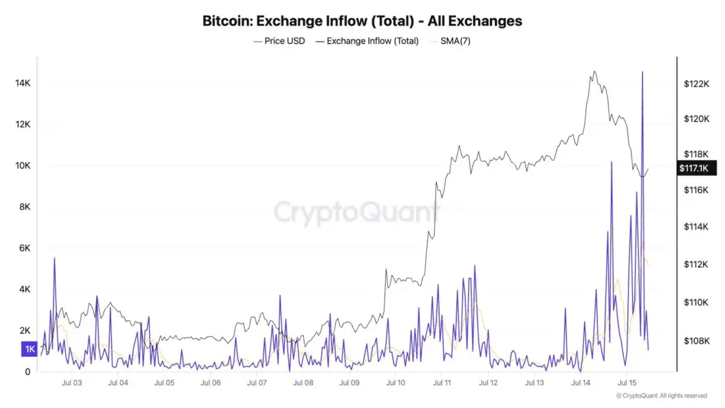CryptoQuant’s observation of the rise in Bitcoin exchange inflows raised concerns about a crash.