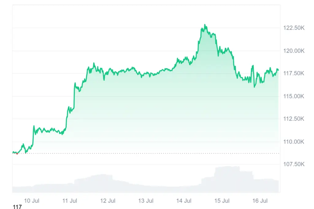 With a 1.6% increase today, Bitcoin has successfully hit $118.9k.