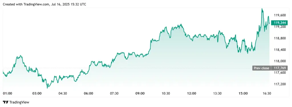 Trump denied allegations that he intended to terminate Powell’s tenure as Federal Reserve Chair, asserting that it is exceedingly unlikely, unless Powell is required to resign due to misconduct. Nevertheless, he acknowledged that he had conversed with Republicans regarding the potential for this to occur. The president’s statement resulted in a decline in the price of BTC, which fell below $119,000.
