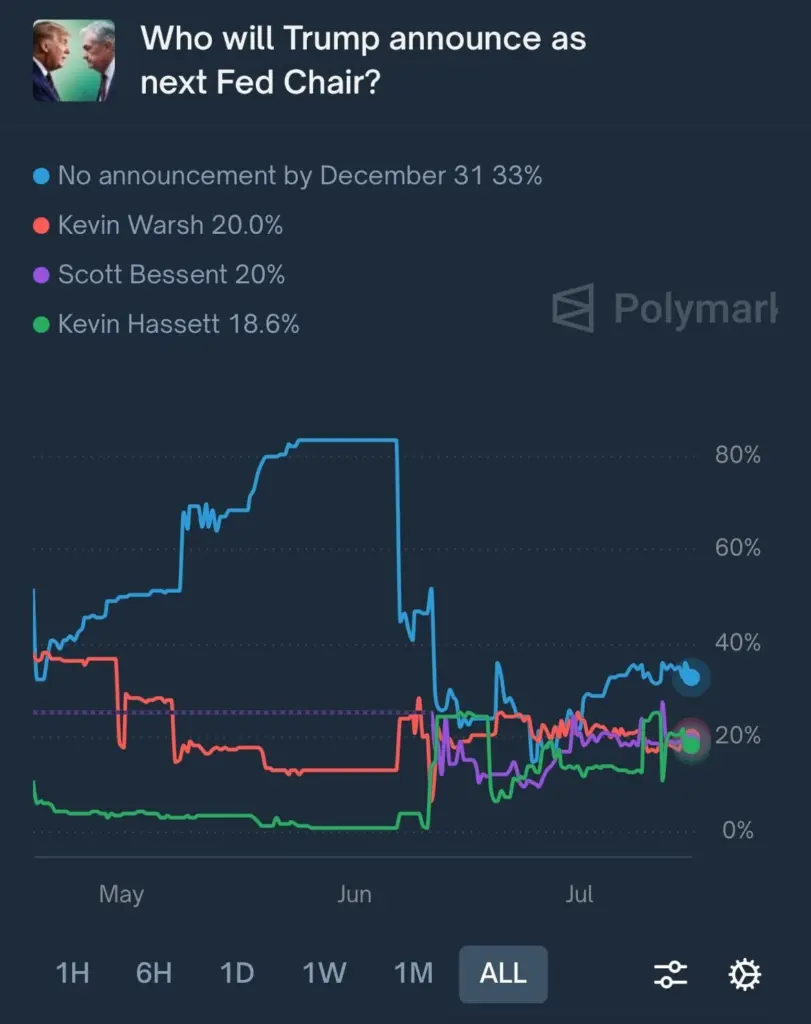 Interestingly, this development occurred just one day after US Treasury Secretary Scott Bessent announced that the process to select Powell’s successor had commenced. According to Polymarket data, the current frontrunner in the competition to succeed Powell is White House Adviser Kevin Hassett.