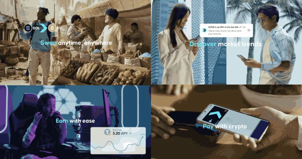 Its shopping feature supports over 300 brands in gaming, travel, mobile, and e-commerce categories, enabling users to make crypto purchases at platforms like Amazon, Google Play, and Shopee. Regional QR code payment integrations at the national level are also being developed.