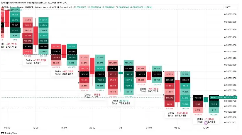 $BONK/USDT volume footprint, July 30 (Source: TradingView)