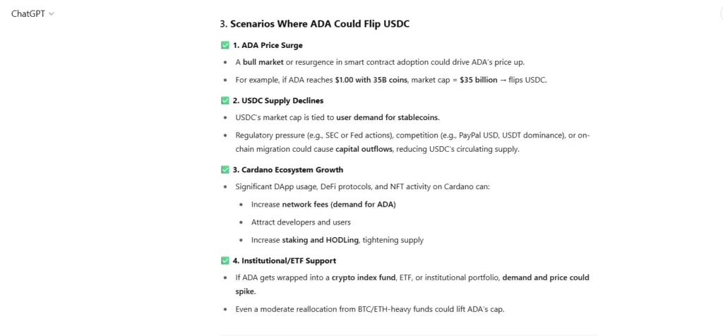 ChatGPT Expounds On Method By Which ADA Will Flip USDC