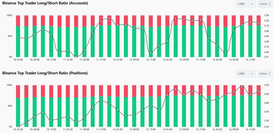 According to crypto analyst CW, the LINK long positions of Binance’s best traders are consistently increasing. The altcoin’s long position ratio on the leading crypto exchange is 75.36%. This suggests that traders anticipate a price breakout for the altcoin soon.