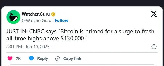 CNBC analysts anticipate that Bitcoin (BTC) will surpass $130,000 in new all-time highs this week, maintaining the bullish sentiment surrounding the market-leading cryptocurrency.