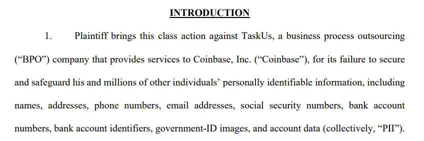 In a complaint filed in Manhattan on May 27, TaskUs, a U.S. outsourcing company with operations in India, was accused of managing Coinbase’s customer service.