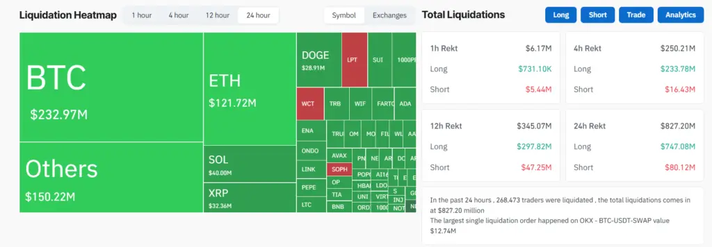 According to Bloomberg, the purported sanctions are not expected to be implemented until June; however, the cryptocurrency market responded promptly. The total crypto liquidations have reached $827 million, Bitcoin has fallen below $105,000, and the entire market has experienced a 5% decline.