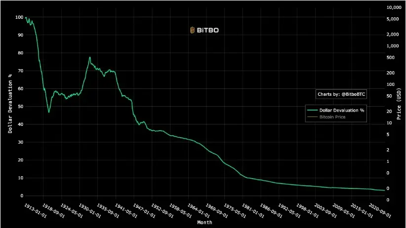Since the Federal Reserve’s establishment in 1913, the U.S. dollar has lost over 96% of its purchasing power. This decline has been accelerated by the end of the gold standard imposed by President Nixon in 1971.