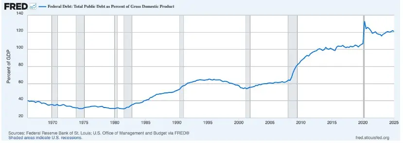 The fiscal deficit of 7% of GDP is the highest among industrialized nations, and the federal government debt has reached 125% of GDP.