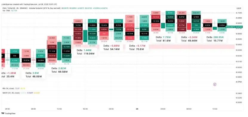 $ENA/USDT volume chart, July 28 (Source: TradingView)