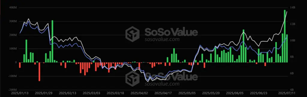 On July 10, these funds received $383.10 million, the most significant daily inflows this week.