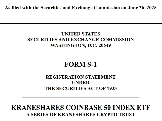 KraneShares’ Coinbase 50 Index ETF filing tracks top cryptos like Bitcoin and Ethereum, reflecting rising institutional crypto demand.