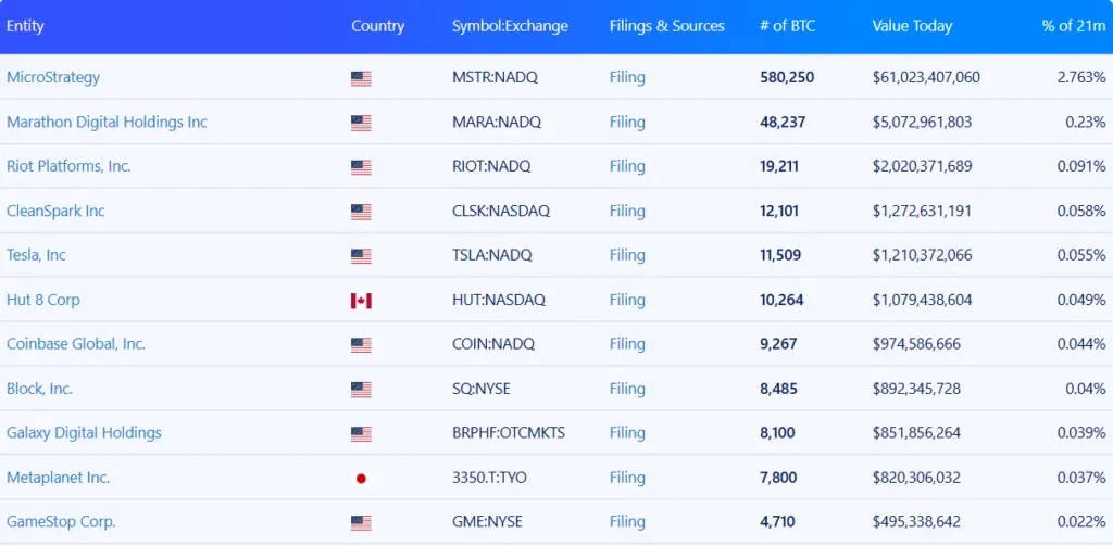 This surpasses Block Inc.’s 8,485 BTC and Galaxy Digital Holdings’ 8,100 BTC.