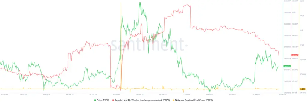 This development is bearish and implies that these investors are not optimistic about the future price action of Pepe Coin to retain the tokens.