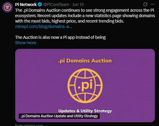 Despite the backlash, the Pi Network .pi Domains auction gains traction with $1.7M in bids ahead of its June 28 close, showing rising investor interest.