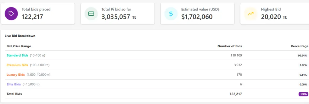 Interestingly, the Pi auction figure indicates that 3,035,057 Pi Network coins have been bid on.