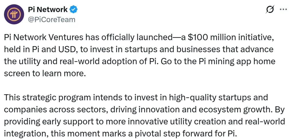 Pi Network plans to invest $100 million in startups developing blockchain applications, aiming to accelerate innovation within its growing ecosystem.