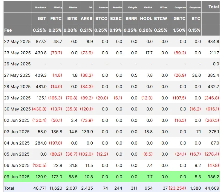 According to Farside Investors data, spot Bitcoin exchange-traded funds saw net positive inflows of approximately $386 million on June 9, recovering after a two-day sell-off. In recent weeks, the company has pledged to expand its data center footprint aggressively. Last week, it pledged $10B to invest in new data centers in North Carolina.