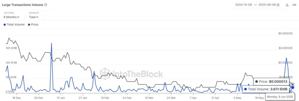 The data from IntoTheBlock indicates a substantial decrease in the number of large Shiba Inu transactions valued at over $100,000.