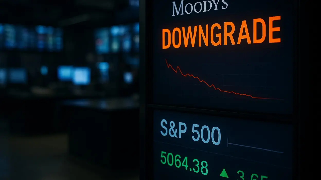 Stocks hold flat after Moody’s cuts in the U.S. credit outlook, stalling the S&P 500 rally and raising investor concerns over fiscal stability.